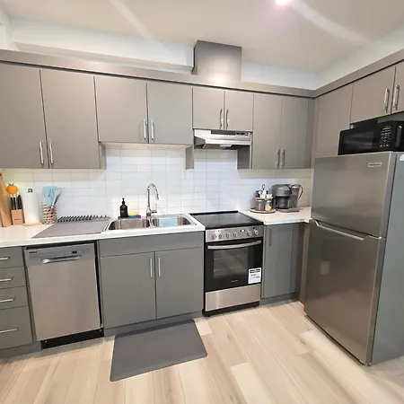 Kuchnia w Amaville Suites - One Bedroom In West Edmonton wyposażono w piekarnik i zmywarkę do naczyń dla potrzeb gości. Od apartamentu do lotniska Edmonton Municipal 36 minut jazdy. Aktywni Goście obiektu noclegowego mogą korzystać z pola golfowego.